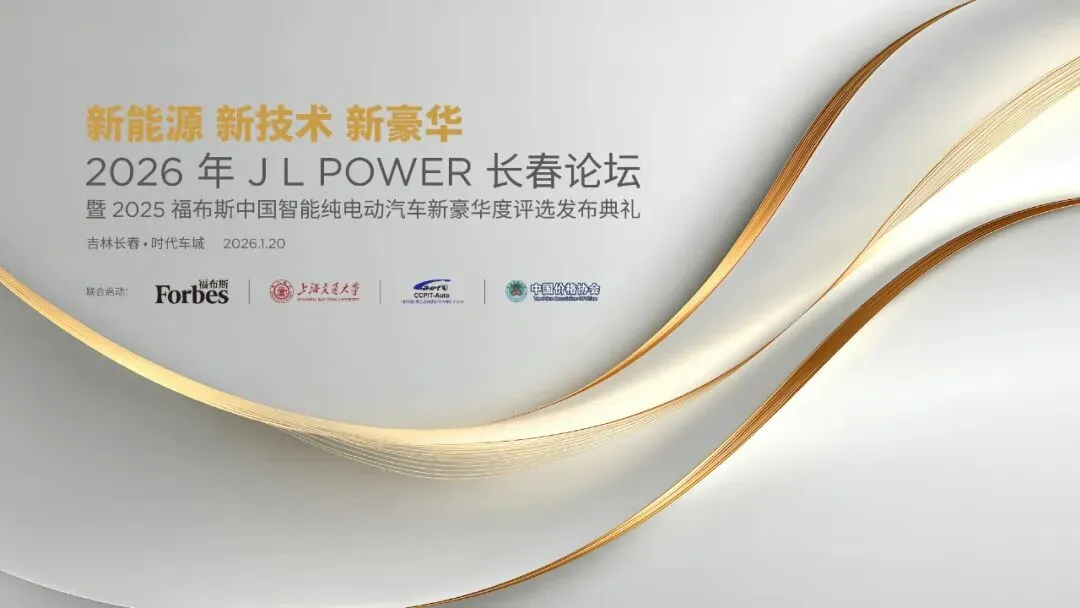 1月20日,“新能源、新技术、新豪华”2026年J L POWER长春论坛暨2025福布斯中国智能纯电动汽车新豪华度评选发布典礼于长春时代车城成功举办。本次活动由中国国际贸易促进委员会汽车行业分会、中国价格协会、上海交通大学和福布斯中国联合主办,上海交通大学奢侈品品牌研究中心承办。