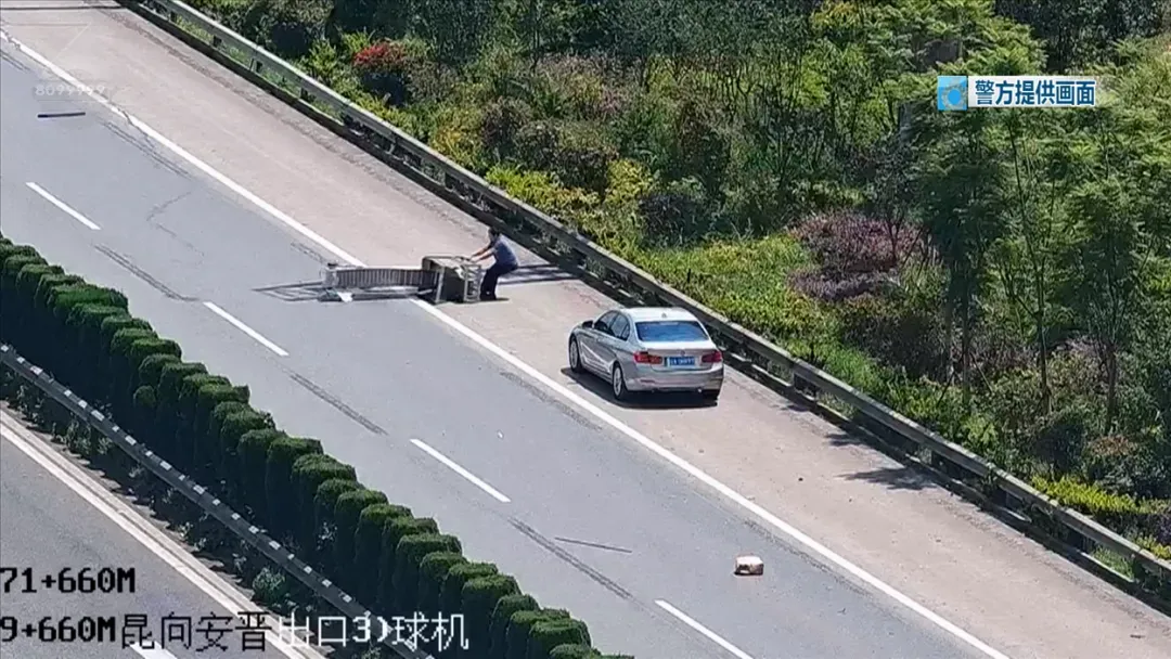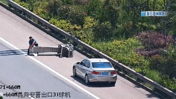 云南省公安厅高速公路三支队综合管理大队 民警 张明宽:“当时小车驾驶员告诉我们,他看到这个铁架子后,立刻感觉到了危险。如果他不及时移除的话,就会严重影响其他车辆的通行安全。”
