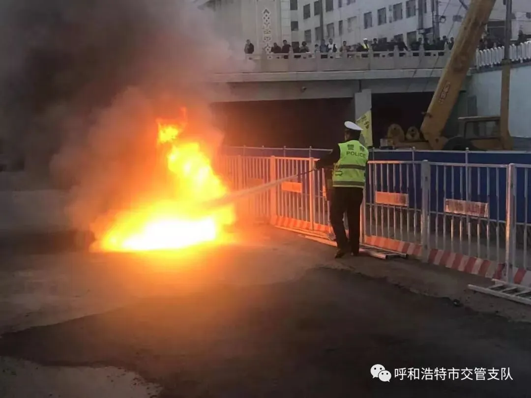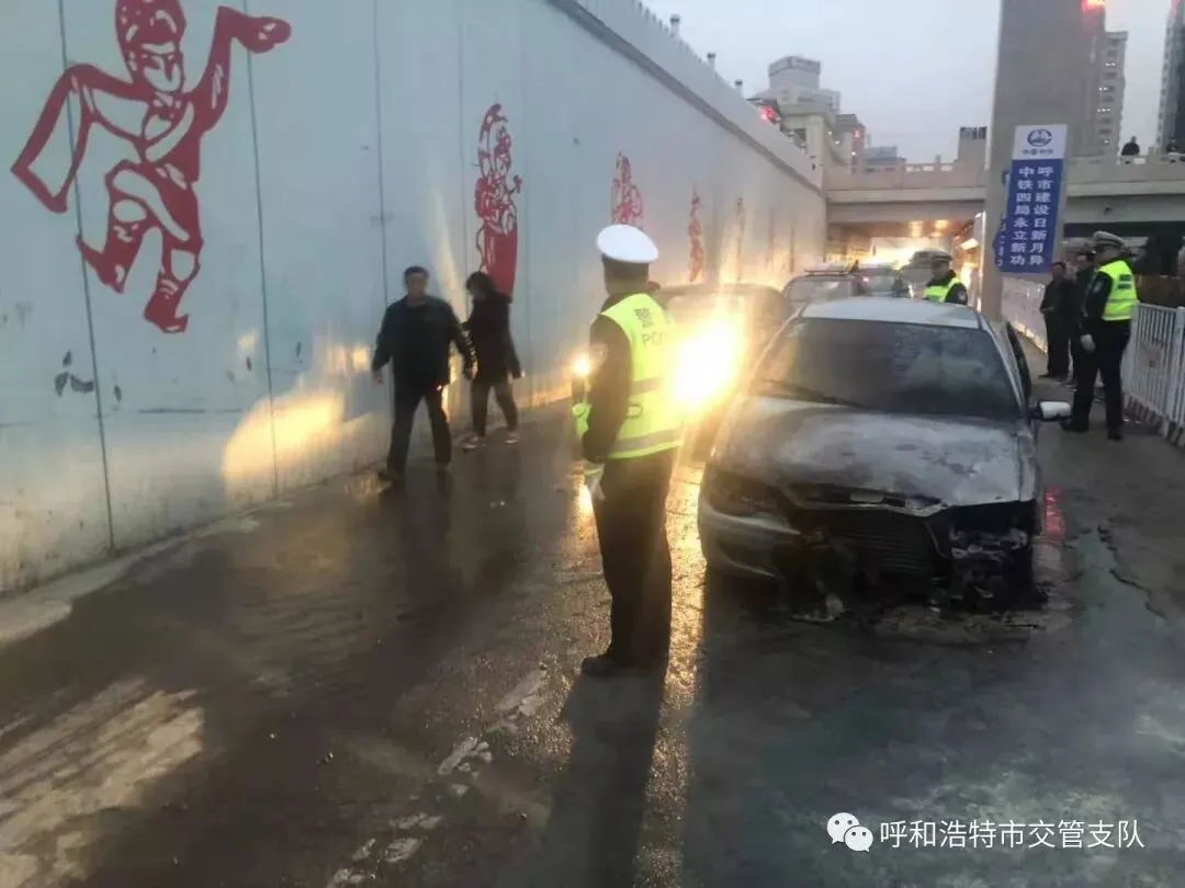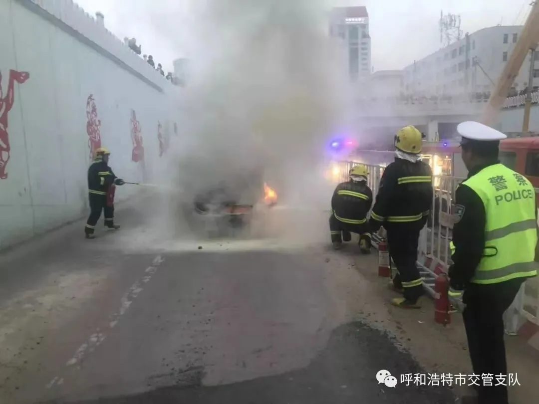 2019年3月19日下午6点30分左右,正在执勤的呼和浩特新城区交警大队四中队交警付涛看到哲里木路蒙牛桥中段火光冉冉,于是火速赶往现场察看情况,得知是一辆小轿车因为线路老化发生了自燃,交警付涛冒着生命危险前去勘查车内是否有人员被困,幸运的是车上人员已经脱离危险。随即交警付涛将这一突发情况上报民警张智慧并对来往的车辆进行封控和疏散人群,与此同时拨打119,这时民警张智慧带领交警郭浩南带着灭火器火速前来救火,无奈火势太大,小小的灭火器对于大火已经无济于事,就在这时消防车辆抵达现场,历经半个多小时的时间才将大火扑灭。随后民警张智慧现场指挥将已经没有复燃风险的车辆移至安全区域,同时拥堵路段加强疏导,保障了辖区夜间交通秩序通畅。