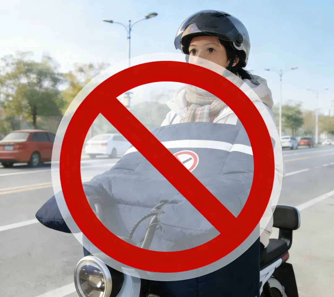 出行前应检查车辆刹车、轮胎、灯光、喇叭等关键部件,确保车辆状况良好。不对车辆进行非法改装、加装。冬季骑行应注意,拒绝加装“挡风被”等固定式保暖装置,此类物品会限制肢体活动与车辆控制,极易引发事故。可选择穿戴式防寒衣物,如护膝、护肘等,确保骑行安全。骑乘电动车,必须规范佩戴符合国家标准、具有3C认证的安全头盔。根据头围选择合适的尺寸,并系紧卡扣确保佩戴牢固。切勿购买和使用劣质、无认证或大小不适配的头盔。带儿童出行时,应为儿童佩戴专用安全头盔。