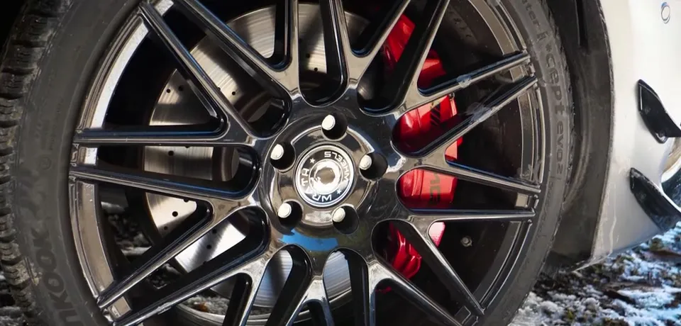 A45S轮毂细节展示,熏黑轮毂和红色卡钳。