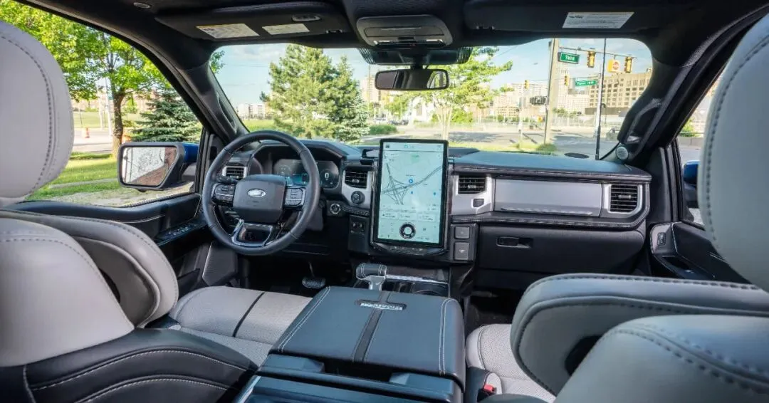 (福特电动版F150内饰,竖屏确实很有福特特色,图片来自caranddriver网站)