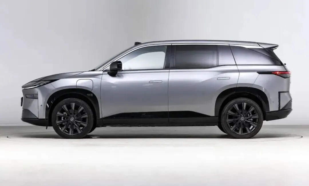 侧面来说,它的侧面造型比较饱满,看起来很敦实,而不是轻飘飘的电车造型。隐藏式门把手弹出来的质感还可以,轮眉用黑色包围,配了18寸的轮毂,整体通过性应该不错。后排隐私玻璃与前排隔音玻璃的配置在这个价位上实在。
