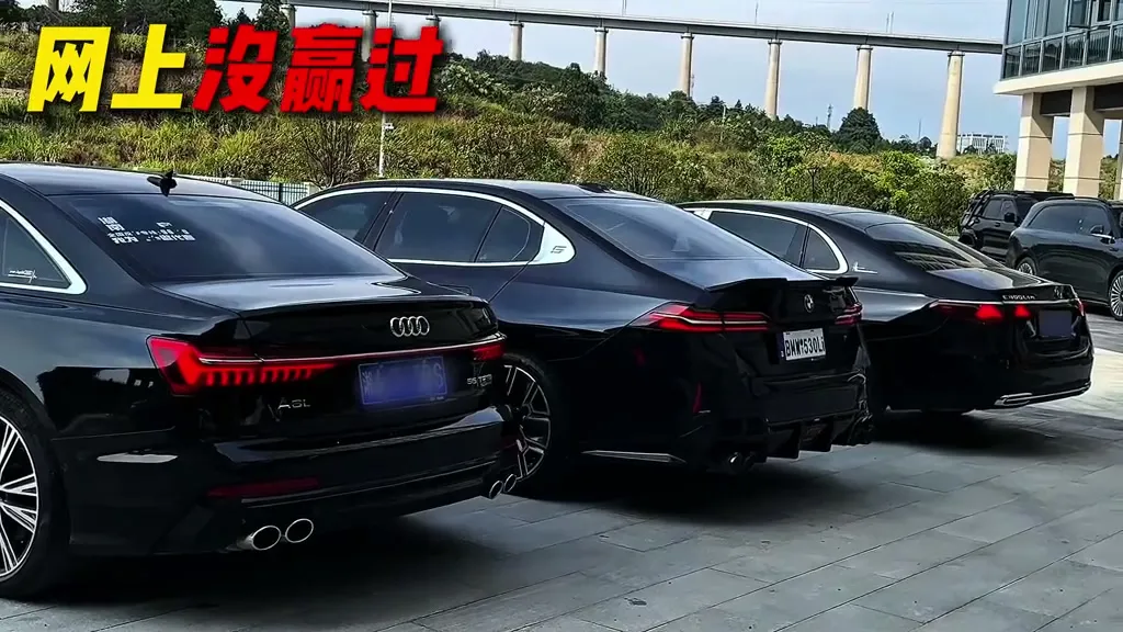奔驰E级、宝马5系、奥迪A6L三款车型并排展示,豪华大气。
