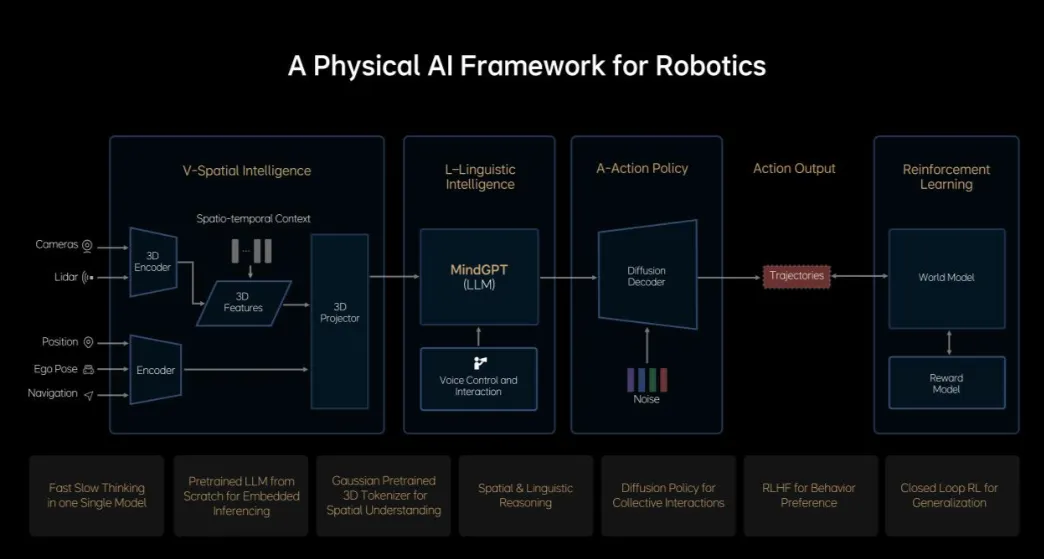 语言模型:相当于汽车的“理解中枢”,能解析导航指令、交通规则,甚至你的语音需求,比如“前方第二个红绿灯右转”“保持安全车距”,让人车交互更自然;
