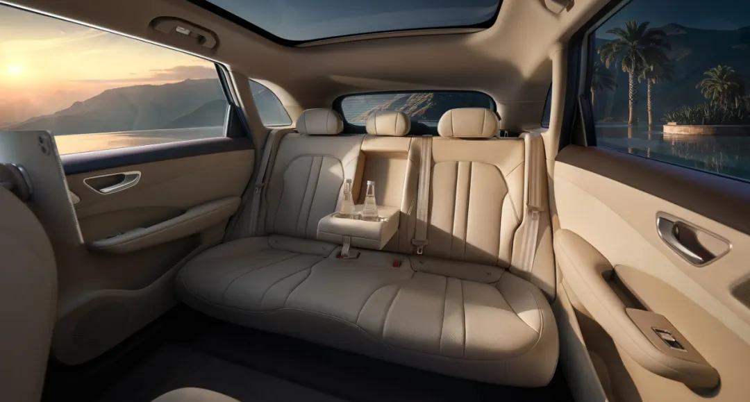 空间方面,尚界H5增程Pro轴距2840mm,得房率67%,后备箱容积601L,配备2.3㎡穹顶天幕与100%遮光电动遮阳帘。