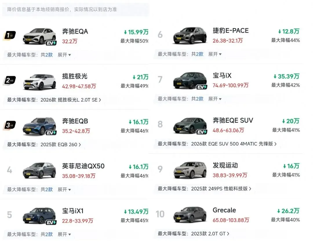 变天了!2026年SUV大降价来袭:燃油车成特大“重灾区”,最大降幅50%.