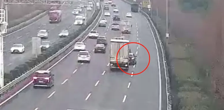 就在这千钧一发之际,轿车后方一辆货车果断采取行动——司机李小帅迅速将车辆安全变道至事故轿车前方停靠下来,用货车车身作为“屏障”,防止轿车继续向前滑动。这一勇敢而冷静的举动,避免了可能出现的危险后果。
