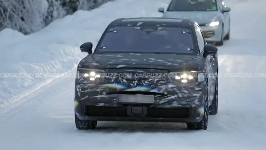 根据外媒 CarBuzz 今天凌晨放出的最新谍照,新车前脸最醒目的变化来自大尺寸椭圆形前大灯。不同于添越的四眼灯设计,新车改用更接近欧陆 GT 的灯组风格,整体轮廓更加修长,水滴形态更加明显,灯组顶部辅以装饰灯带,其余区域则采用分段式光源布局。