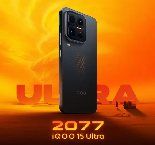 iQOO 手机官方今日正式公布了 iQOO 15 Ultra 的外观,新机双配色登场:2077 流光橙 / 2049 寒光蓝,宣称“演绎未来科技美学的极致探索”,2 月初见。