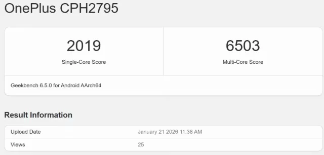 型号为 CPH2795 的一加手机昨日(1 月 21 日)现身 GeekBench 跑分库,6.5.0 版本单核成绩为 2109 分,多核成绩为 6503 分。基于此前 GSMA IMEI 数据库和 TDRA 认证信息,该机对应一加 Nord 6 手机。