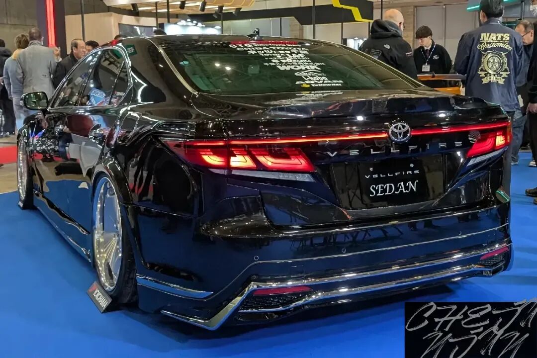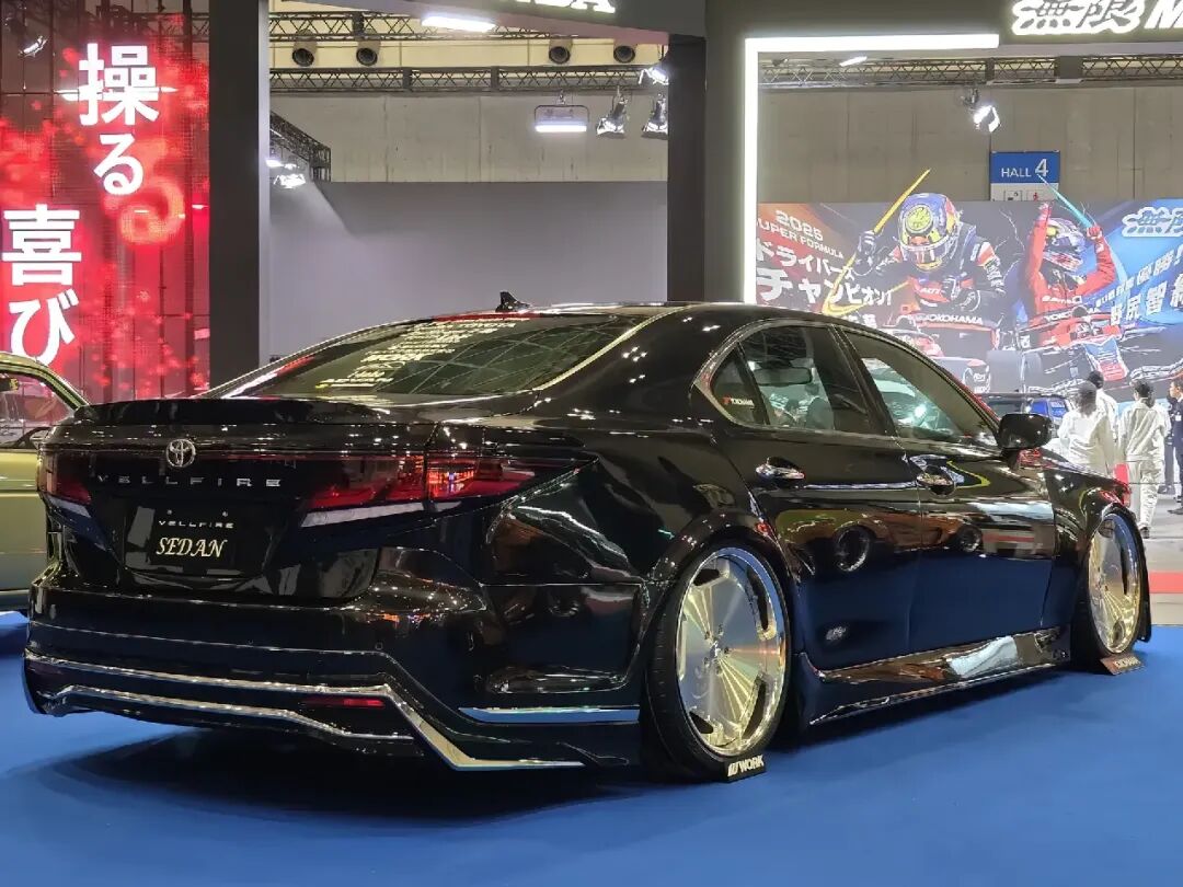 在2026东京改装车展上,日本NATS自动车大学校的学生带来了不少意想不到的作品,此前就报道过Q版Supra,大家可以看回此前的文章《前有Q版R32后有Q版 GR Supra敞篷,NATS学生的作业就在这了》。而该团队还带来了一辆颠覆想象的改装作品,他们将丰田旗舰MPV Vellfire威尔法的设计灵魂,安装到雷克萨斯LS460的豪华底盘上,打造出全球独一份的「Vellfire Sedan」。这辆车既是对品牌设计语言的跨界实验,也是学生们用双手完成的大胆创想。