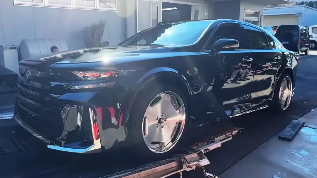 走近这辆车,最吸睛的莫过于车头,直接移植自Vellfire威尔法的LED头灯组与气势逼人前保险杠,经过重新修整后完美适配轿车车头比例,大尺寸镀铬格栅延续了MPV的威严气场,却与雷克萨斯的精致基因意外融合,营造出“西装暴徒”般的视觉冲击。