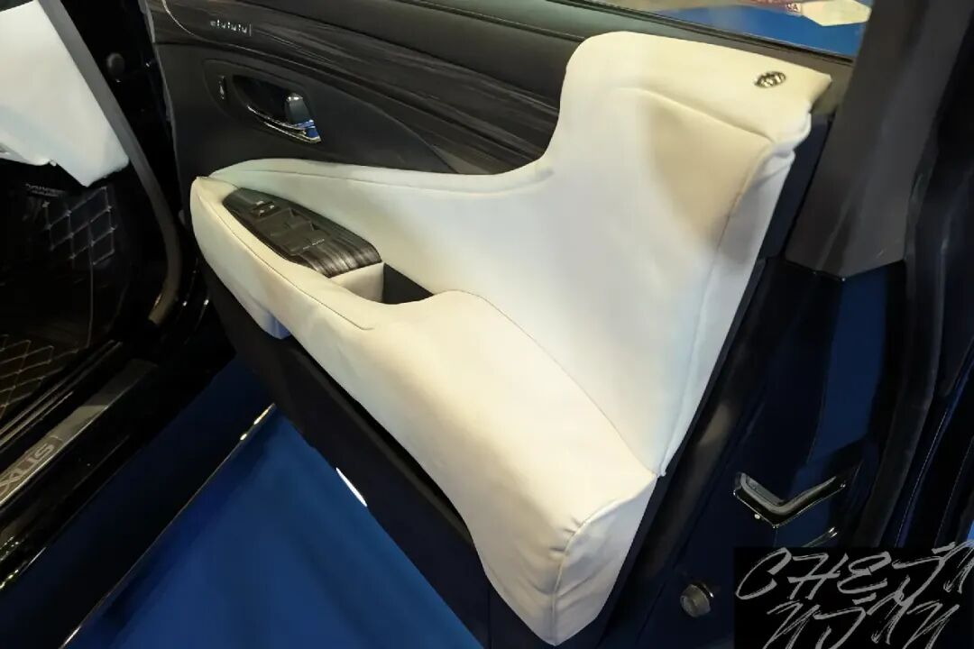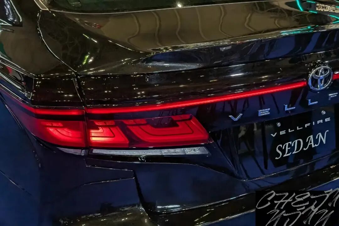 车尾同样是Vellfire威尔法元素的主场,LED尾灯组直接沿用MPV设计,小型鸭尾尾翼与重新打造的后保险杠层次分明,细节处嵌入的镀铬饰条不仅强化了豪华感,更让车尾与车头设计形成呼应,牌照框旁的“Vellfire Sedan”标识,则直白宣告着它的独特身份。