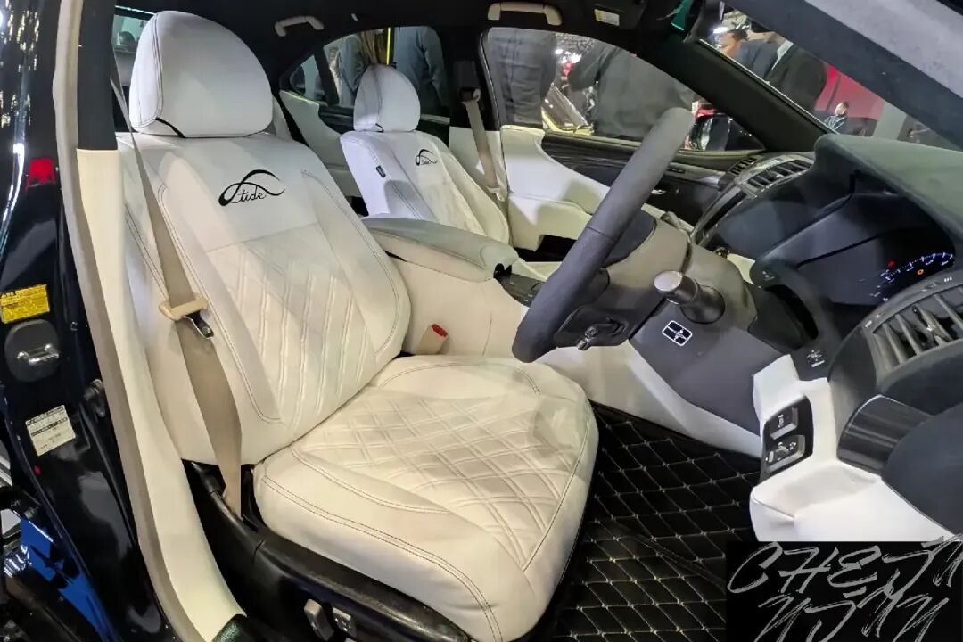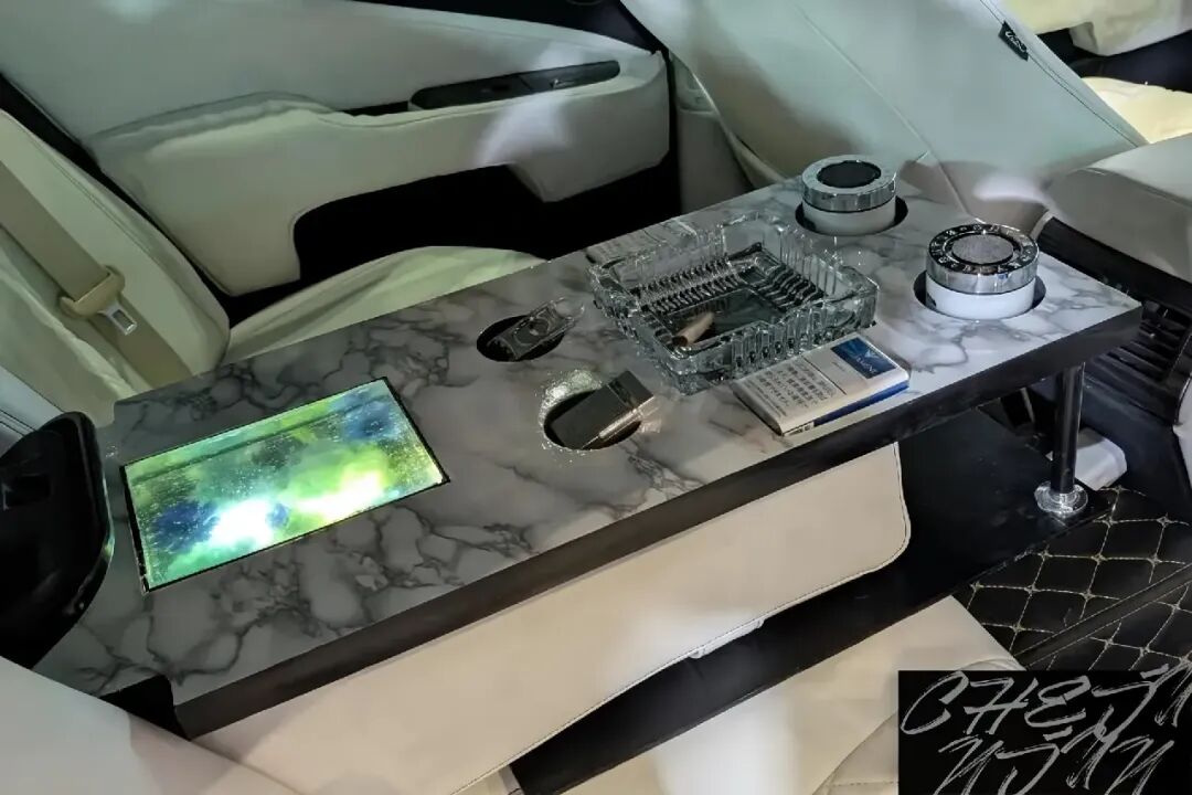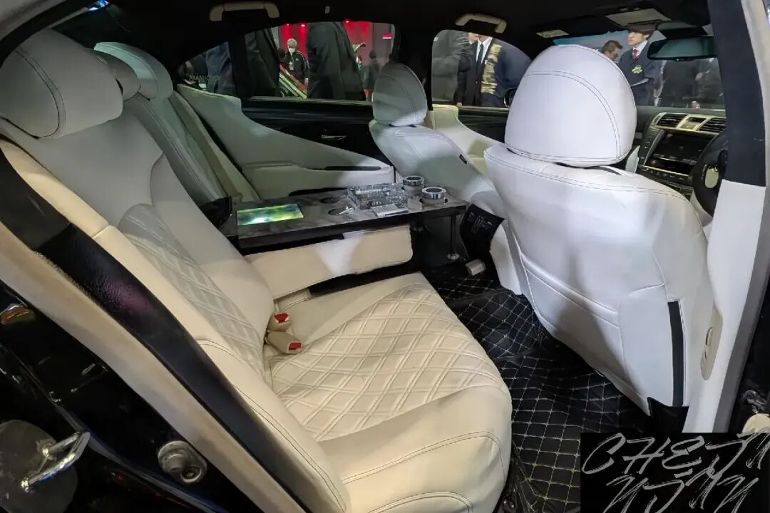 进入内饰,学生团队并未选择彻底魔改,而是以质感升级为核心,座椅重新包覆并加装专属椅套,仪表台导入麂皮材质点缀,方向盘融入木质饰板,最终营造出介于LS 豪华房车与日系高端MPV之间的独特氛围,既保留了原车型的舒适基底,又增添了MPV式的温馨感。