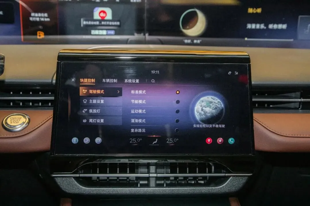 内饰的话,航海家的设计给人的感觉更像是一台新能源车型。中控台上方配备了一块贯穿式的横向大屏,尺寸为23.6英寸,和新能源车里的天际平比较类似。下方是一块11.1英寸的半悬浮式中控屏,车机采用高通骁龙8155芯片,能实现语音双驱唤醒和连续识别。两幅式方向盘造型简约,握感也比较充实,车内用了较多的软性材质和皮质进行包裹,营造出较高的档次感。