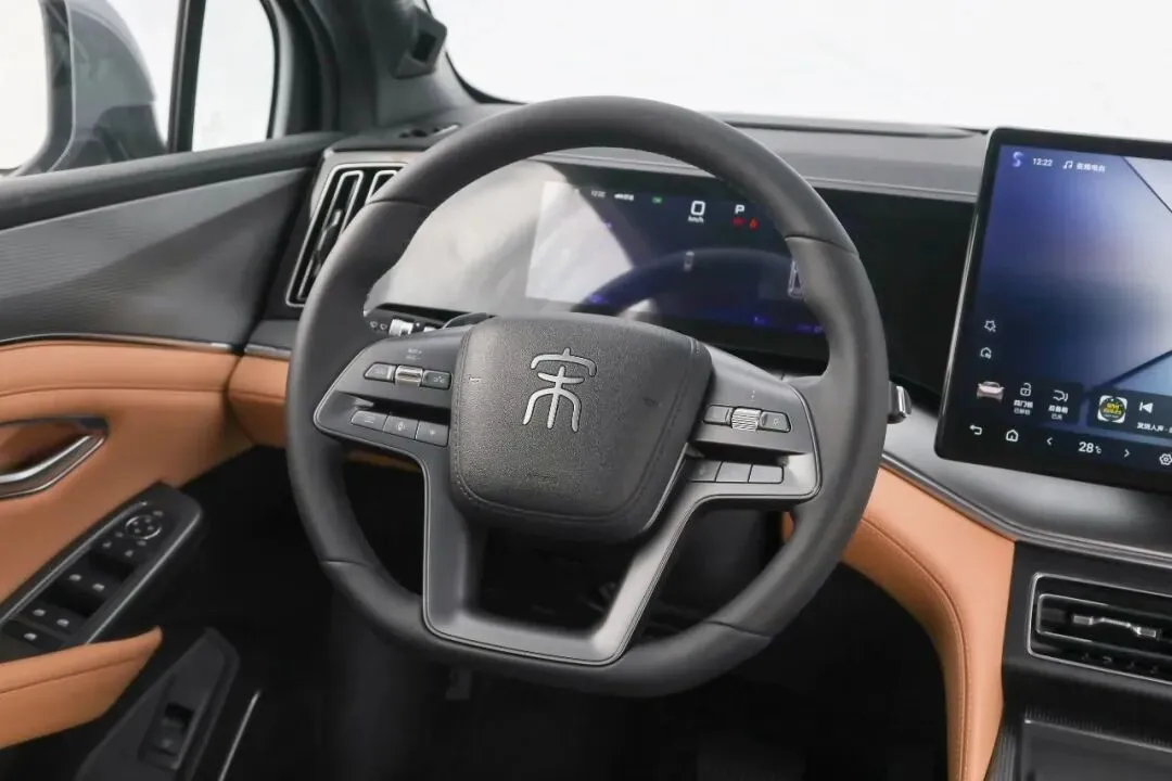 至于内饰,宋L DM-i整体布局变化不大。不过,副仪表台区原来的电子挡板已经取消,换成了主流的电子怀挡,腾出了更多的可用空间,实体按键也变成了横向单排式设计,更加简洁干练。这套内饰放在当下说不上有多好看,甚至给人的感觉略微有些老气。尤其是方向盘的造型,并不一定能讨好年轻人,而且整体Y字形的布局,相对于主流的T字形设计也是以稳重为主。当然,对于选择宋L DM-i的车主而言,更多的是作为家用,年龄基本在30岁以上,因此这套内饰似乎也比较符合这类群体的审美。