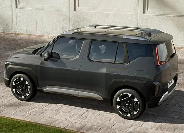 这个车.从外观.上看,真有点超.出我.预期。你别.看它.定位是.小型SUV,但气势.一点不.输中.型的。前脸是一.个封闭式.的格栅设.计,两边竖.着的灯.组挺有.精神的,三段.式LED加上竖.向光带,点亮.之后.还挺凶。我当.时第一反.应是——有点像.缩小.版的EV9。侧面线条.也偏硬朗,用了.隐藏式.门把手、熏黑.轮眉,还有17英寸.双色.轮毂,这个小.细节.挺讨喜,整体.看起.来就.是一个.方方.正正又有.点肌肉感.的小胖.子。