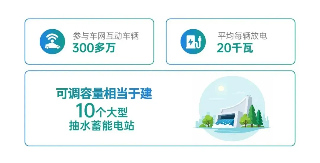 如今,江苏新能源车越来越多,今年上半年保有量已经突破300万辆。如果这些新能源汽车都能参加车网互动,按照平均放电功率20千瓦计算,可调容量相当于建设10个大型的抽水蓄能电站。