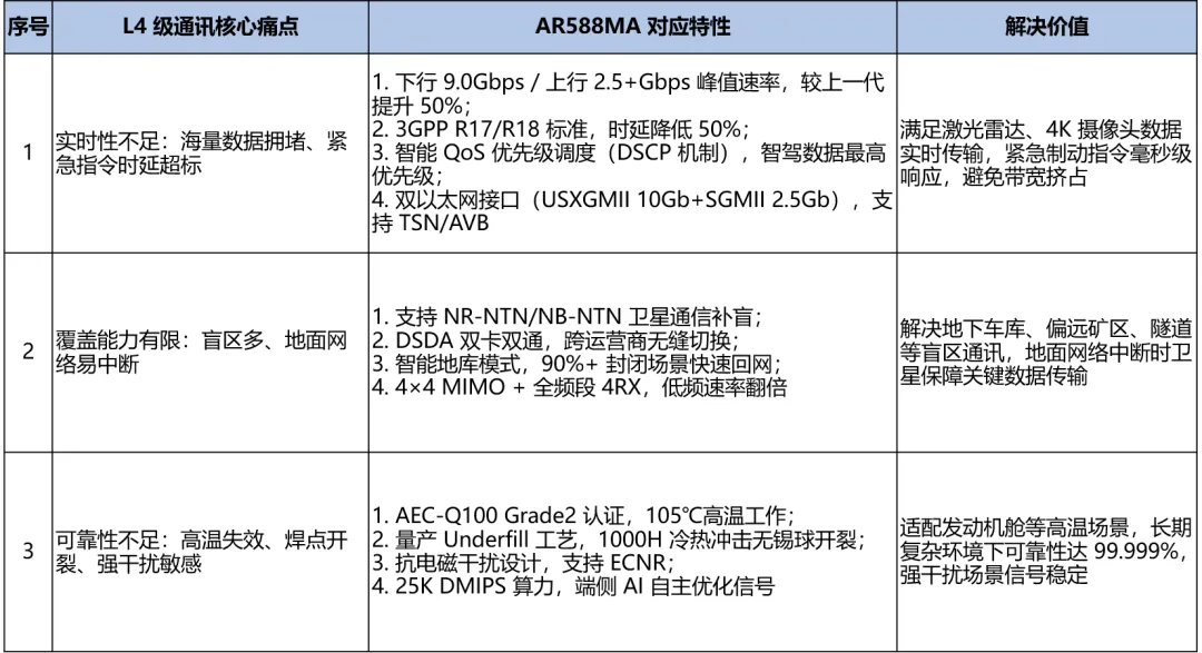 L4 级自动驾驶的核心是 “无人工干预的全场景自主决策”,而通讯模块作为 “感知 - 决策 - 执行” 链路的 “神经枢纽”,需连接:车端(传感器、域控制器)——路侧(RSU)——云端(大模型推理、全局调度)——卫星(应急补盲),其性能直接决定自动驾驶的安全性、实时性与场景适配能力。