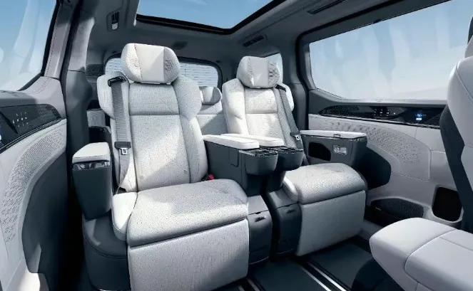座椅, 尤其是第二排, 那叫一个享受. 航空头枕、腿托、小桌板, 通风加热按摩, 全给你堆上.