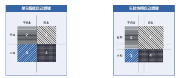 2、 对 SOTIF 的直接作用是通过车路协同感知,将部分 AD“未知不安全”转化为“已知安全”场景,最终实现第 3 象限“未知不安全”的缩小。