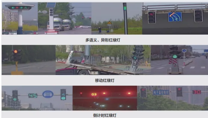 道路上经常会遇到异形、多语义或带倒计时的信号灯(如下图2.7 所示),自动驾驶车辆容易受到环境影响(遮挡、逆光)或自身感知能力下降(感知失效)的情况下,不能准确识别路口信号灯信息,导致出现闯红灯或者交通事故,降低交通效率。