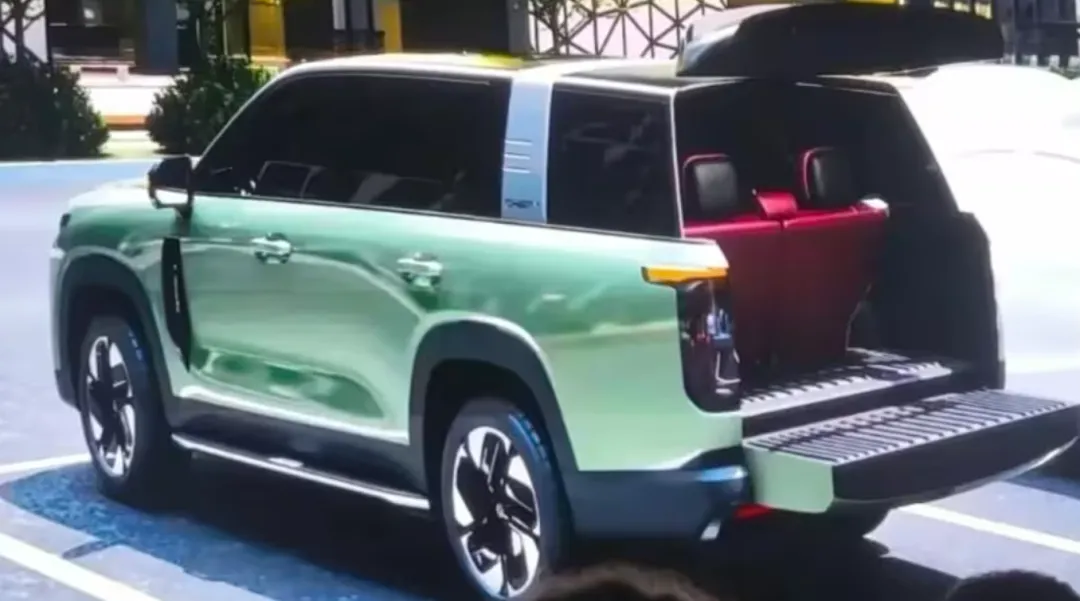 T1T的尾部设计是其最大亮点。效果图可以看出新车采用三排的座椅的设计,并且车尾还采用了天地门的设计,后保险杠还有一个脚踏踏板,与谍照车型完全一致。该车型尾部有排气排出,证实它会是一款燃油车型或者是混动车型。