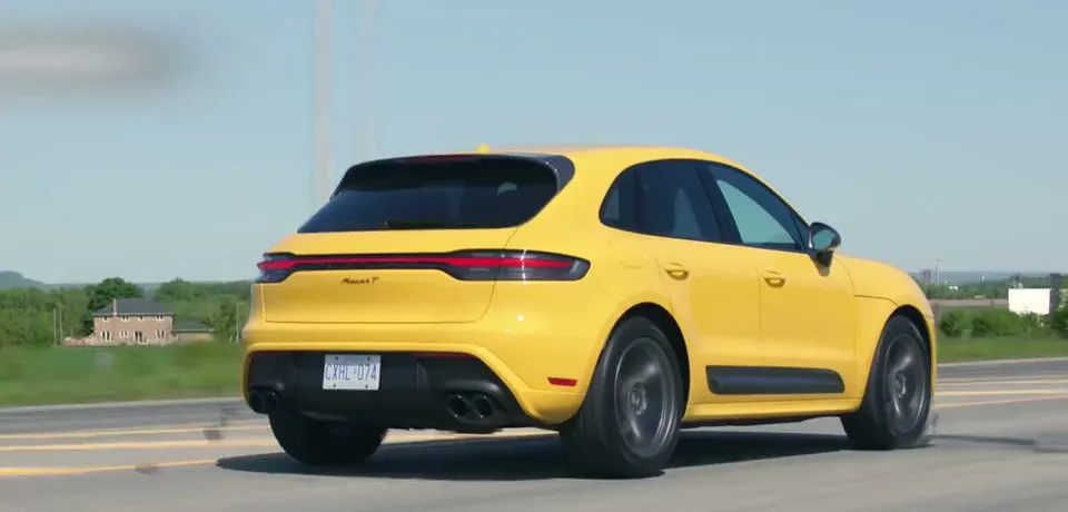黄色Macan后方特写,展现其运动感和时尚感。