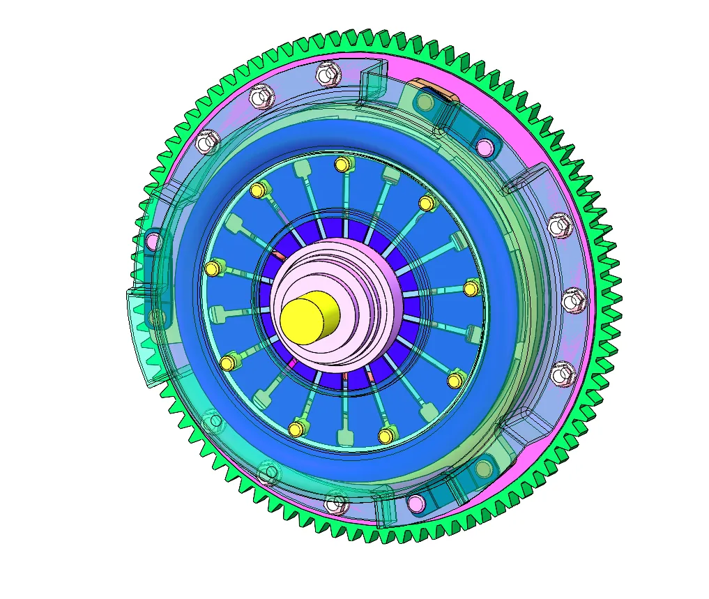 其次,进行了从动盘总成设计。包括花键毂的选型与强度校核,确保其能可靠传递扭矩;摩擦片尺寸满足热负荷与转速约束;并设计了扭转减振器,通过弹簧参数优化(如极限转矩310N·m、刚度4000N·m/rad等),有效抑制传动系振动与冲击。