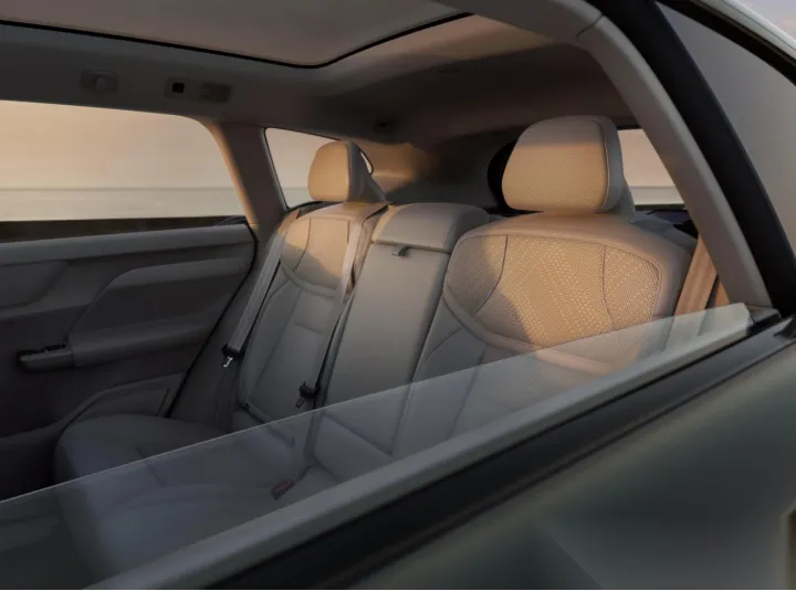 设计的争论也印证了这一点。有人坚持要用封闭式格栅和分体式大灯来强调科技感,这是当前最安全的做法。但另一派认为,斯堪的纳维亚风格的精髓在于功能与形态的统一,而不是元素的堆砌。最终的设计稿里,那道连接着车标的经典反斜杠装饰条被保留下来,据说是在提醒所有人:安全带的意象比任何花哨的灯光都更能代表沃尔沃。车内的用料选择也是如此,放弃了更显豪华的真皮,转而采用Nordico植然皮和羊毛混纺,甚至连中控台都混入了亚麻纤维。这种选择,在不懂的人看来是“省成本”,但在目标用户眼中,却是环保与健康的信号。