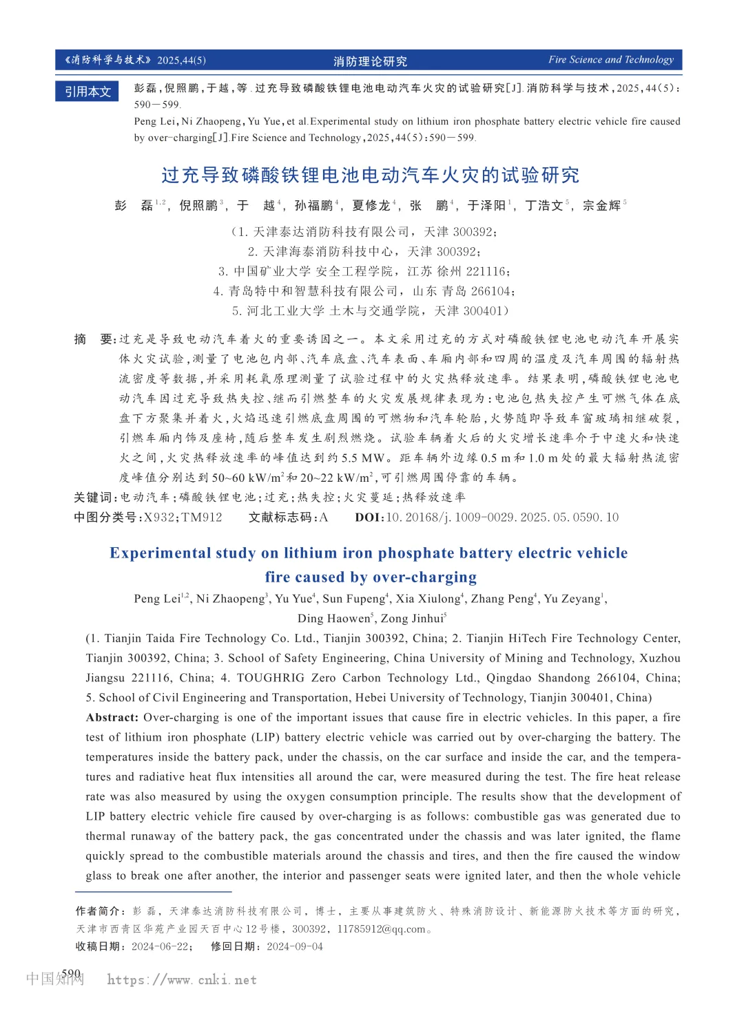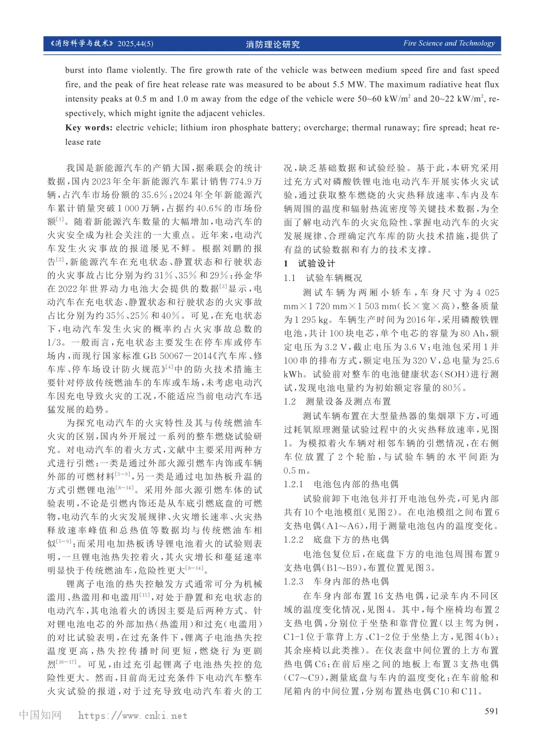 关键词:电动汽车;磷酸铁锂电池;过充;热失控;火灾蔓延;热释放速率;