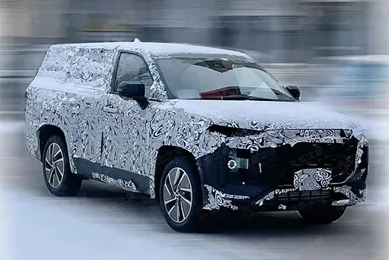 从此次曝光的谍照来看,测试车有着奇瑞家族标志性的前脸设计,超大尺寸前格栅搭配英文LOGO,很有辨识度。前灯组采用分体式造型,双层远近光灯位于两侧导风槽处。侧面有着非常魁梧的车身轮廓,离地间隙较高,并配备侧踏板。