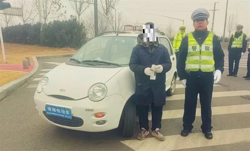 1月17日10时49分,漯河交警四大队民警在辖区樟江东路与韶山路口附近执勤时,发现一辆疑似机动车的“电轿”缓缓驶来,民警立即示意驾驶人靠边停车接受检查。