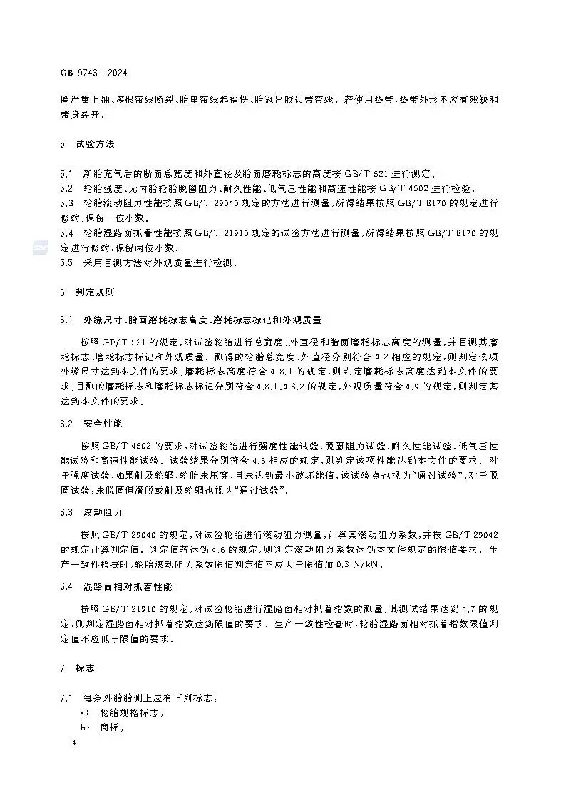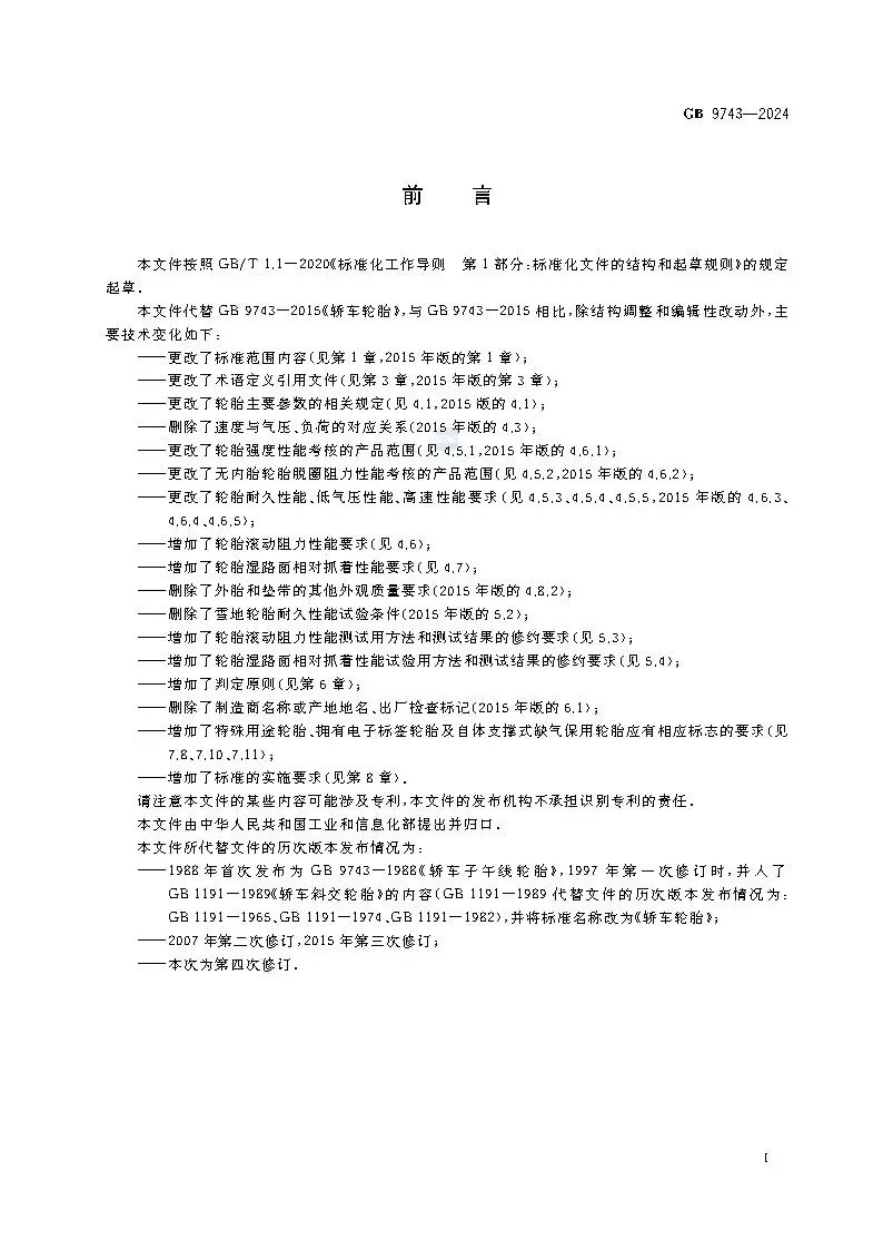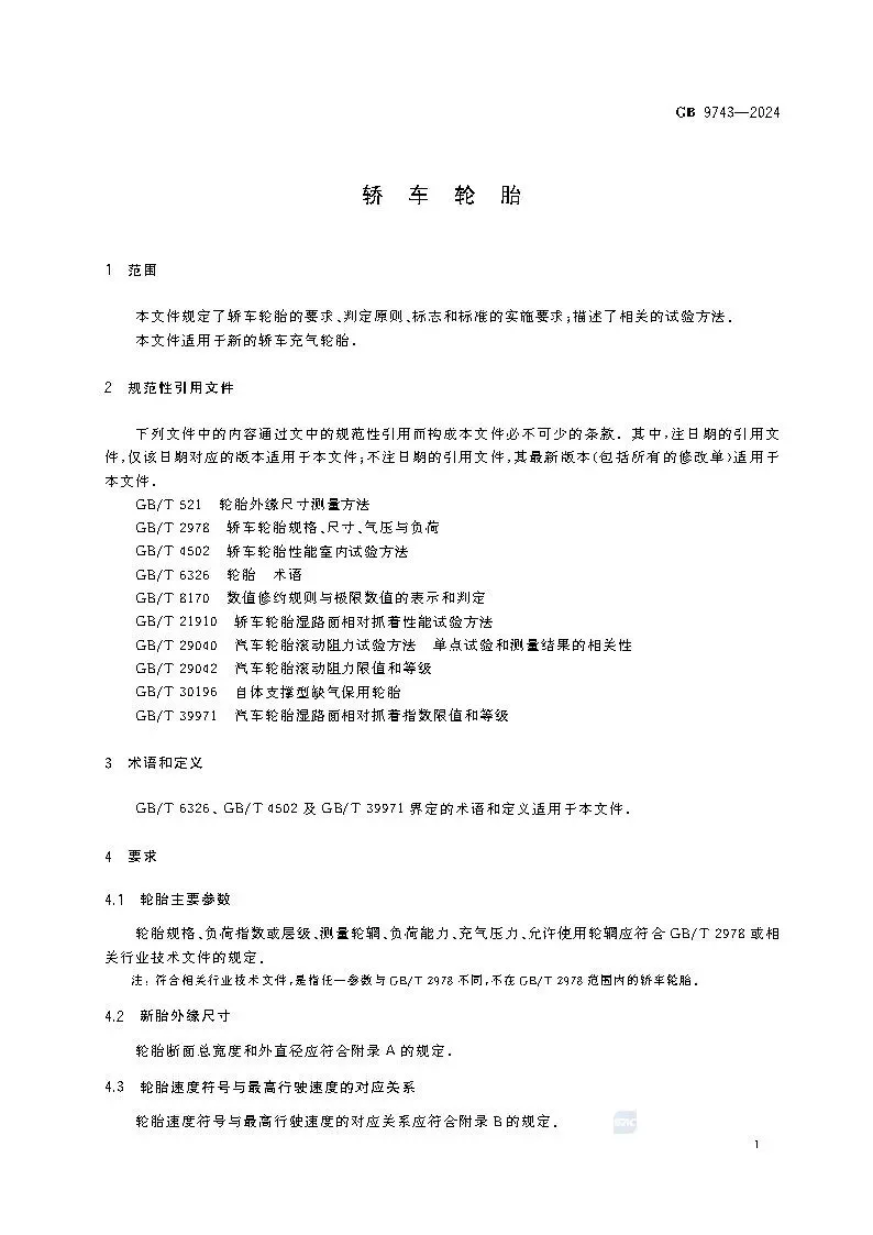 >【标准】GB 9743-2024轿车轮胎