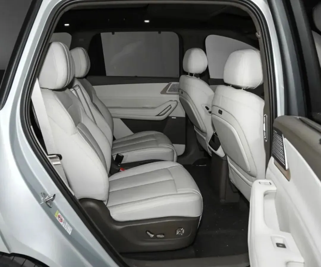 2+2+2的六座布局我觉得是这车很大的一个卖点,第二排那两个独立座椅调节范围很大,前后能动座椅角度也能调,还配了小桌板,舒适度确实可以说是移动沙发级别的。第三排座椅居然也有加热功能,这就照顾得比较周到了,毕竟很多6座车第三排基本就是应急用的。全车49个储物空间加上可以调软硬的悬架,日常用起来的便利性和舒适性都不会差。