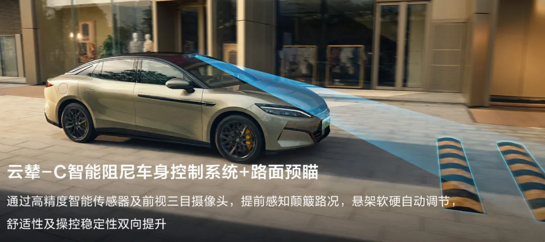 高阶智能驾驶:车顶配备的激光雷达清晰可见,预计将搭载比亚迪最新的“天神之眼”高阶智能驾驶辅助系统(可能为B或X版本),支持城市与高速NOA领航等功能。