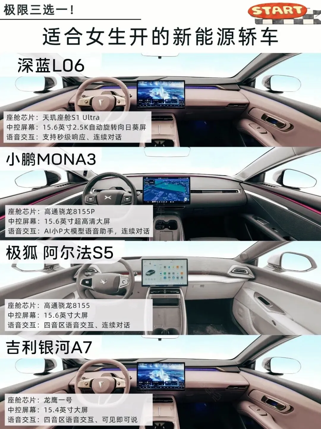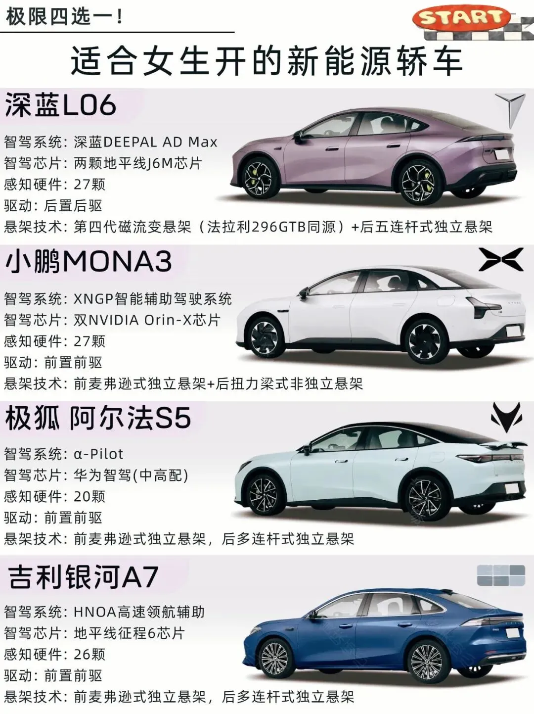 刚毕业想买新能源车的姐妹看过来!十来万预算,这几款超适合女生。深蓝L06颜值高,后驱好开,智驾超牛,续航670km还超充;小鹏Mona M03小巧,车机语音棒;阿尔法S5简约,操控舒适;银河A7气质,综合续航长。追求颜值操控选深蓝,市区通勤选小鹏,稳妥实用选阿尔法,家用选银河。
