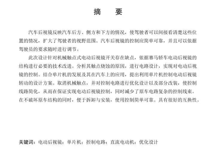 >【设计资料】赛马轿车智能电动后视镜开关及控制线路优化设计【5张cad图纸】