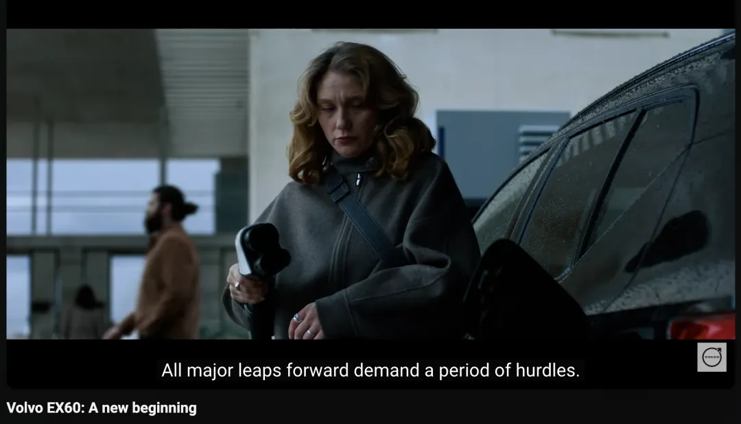 几天前,众所期盼的沃尔沃EX60全电动汽车终于发布了。发布时配合发布了一支名叫 《A new beginning》的广告。说实话,这只广告不像常见的汽车品牌新车发布广告,更像是一封致谢信。一分多钟的广告里,简短穿插了EX60的几个画面,但真正文案展现的却是一连串看起来有点郁闷,甚至有点焦虑的瞬间。而这些瞬间,如果你拥有一辆电动汽车,或许就曾经经历过以下这些场景:坐在车里,看着电量从 3% 跳到2%,附近却没有任何充电站,反其道而行之的“不方便”