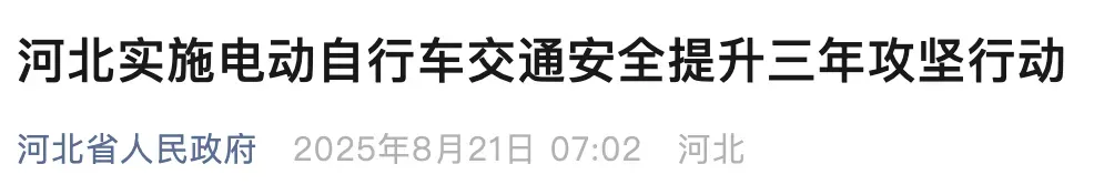 河北省从去年7月至2027年12月,实施专项行动,严查电动自行车不佩戴安全头盔非法改装、无牌上路、闯红灯、逆行、违法载人、醉酒骑行等重点违法行为。确保路面通行安全。