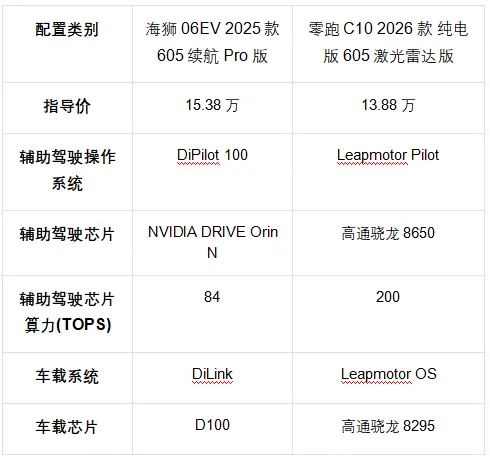 2026款零跑C10定价12.28万-14.28万,全系都在15万预算内,对比海狮06EV主力版本15万以上的价格,优势很明显。