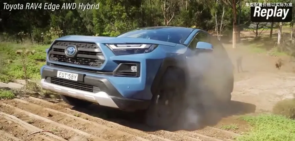 丰田RAV4荣放挑战爬台阶,车辆停在半坡中,原地起步失败,