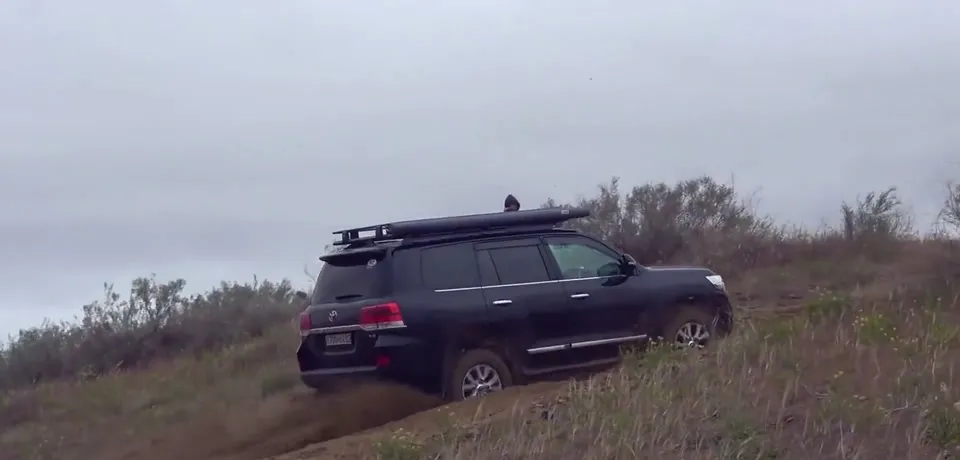 丰田陆地巡洋舰爬坡展示,外观霸气。