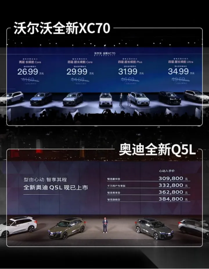 Q5L入门版的车厢里,触手可及的硬质材料和功能缺失的按键,与XC70顶配版Nappa座椅的触感、AR-HUD抬头显示投射出的科技感形成了巨大反差。这已经不是体验的差异,而是两个时代的产品逻辑。
