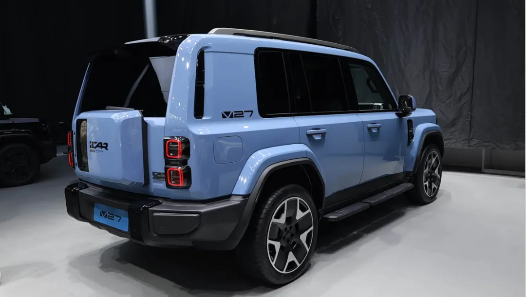 车身尺寸方面,含备胎长宽高分别为5055 *1976 *1894mm,轴距达到 2910mm,整体相比iCAR V23大了不少,是目前iCAR系列尺寸最大的车型。轮胎采用255mm和265mm两种规格,尾部经典的“小书包”造型越野味道十足,还可以选装全尺寸备胎。整个车身设计极具个性化特点,车顶部配备纵向的双天窗、尾部乐高式尾灯等特色设计都给人眼前一亮的感觉。