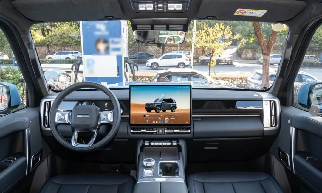 内饰设计方面,中控采用15.4英寸2.5K高清大屏,但保留众多便捷操作的实体按键,智能座舱配备高通8295P芯片,支持全场景语音交互,多指令语音识别,这个级别的芯片车机操作也将会更流畅,车机支持无线CarPlay与OTA升级,作为一款硬派越野车型,前排座椅设计将直接关乎到前面的视野范围,采用官方号称的“指令长座椅”设计,坐姿高,视野开阔;中央扶手区域车辆会配备无线充电面板以及驾驶模式旋钮、水杯架等。