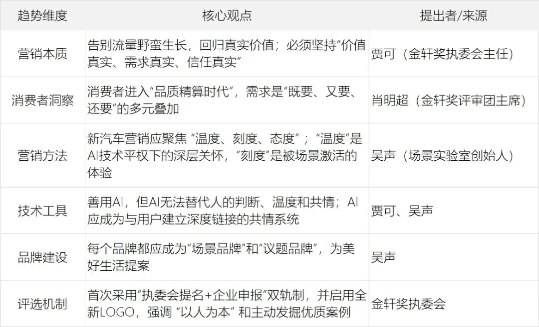 第十二届金轩奖的获奖清单分为年度奖项、营销案例金奖、营销案例优秀奖三大类,从获奖案例和评委观点来看,行业正从追求流量转向追求真实价值;