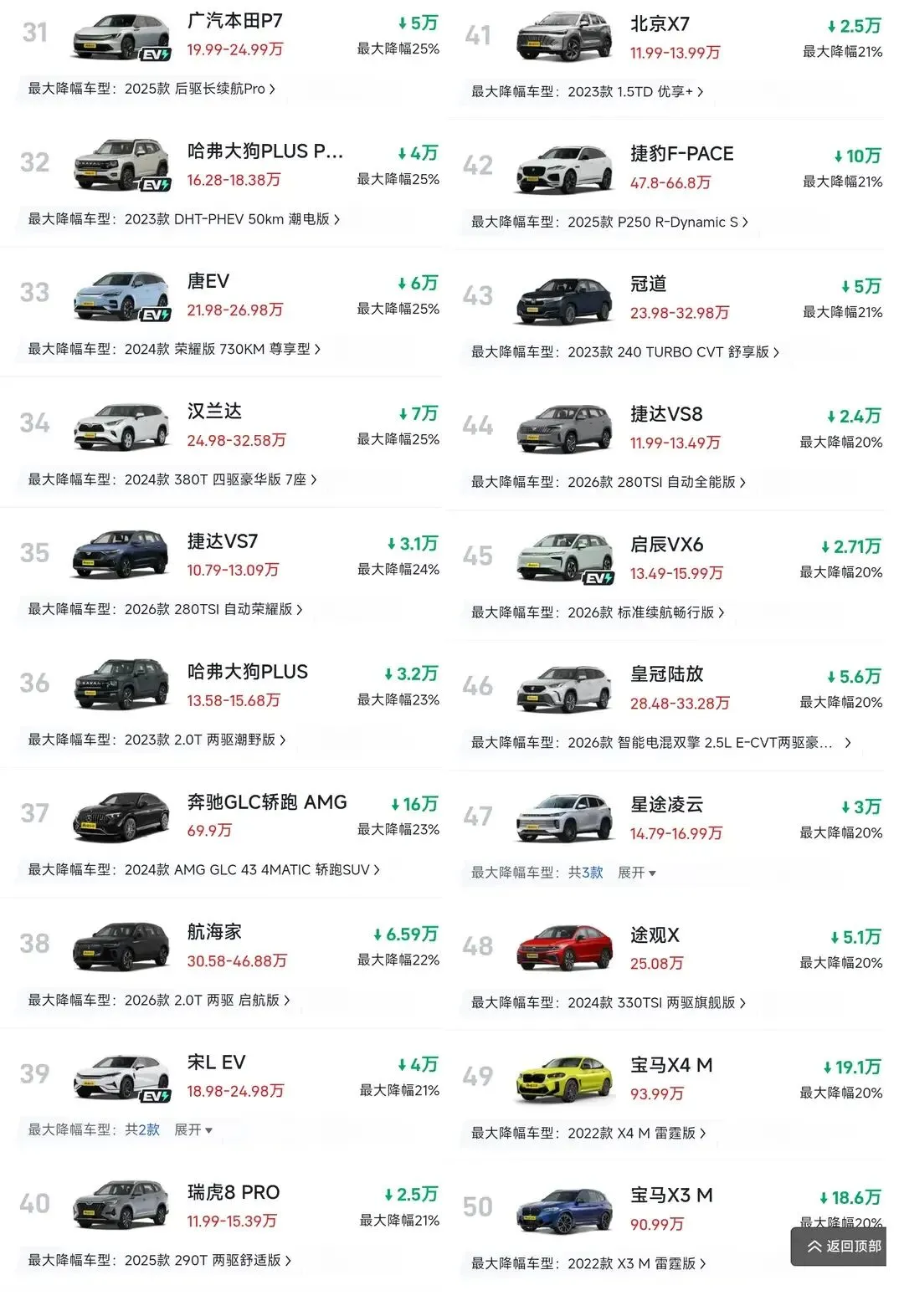从市场数据来看,此次降价潮的力度远超预期:豪华品牌、主流合资、自主品牌全面卷入,绝大多数车型的降价幅度都超过了20%,部分热门车型更是逼近50%的让利幅度。这意味着,曾经动辄三四十万的中型SUV,如今可能花一半的钱就能拿下,整个市场的价格体系正在经历一场彻底的重塑。