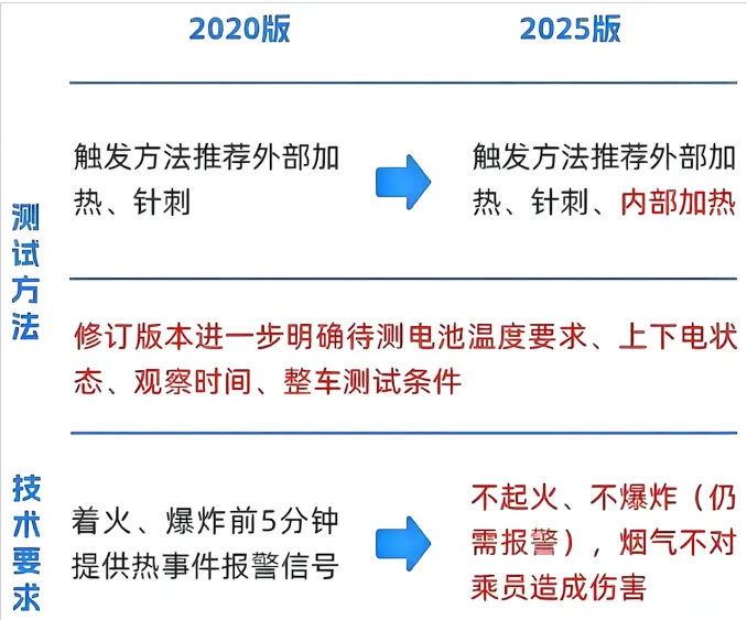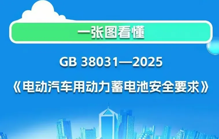 工业和信息化部组织制定的强制性国家标准《电动汽车用动力蓄电池安全要求》(GB38031-2025)日前发布,将于2026年7月1日起开始实施。